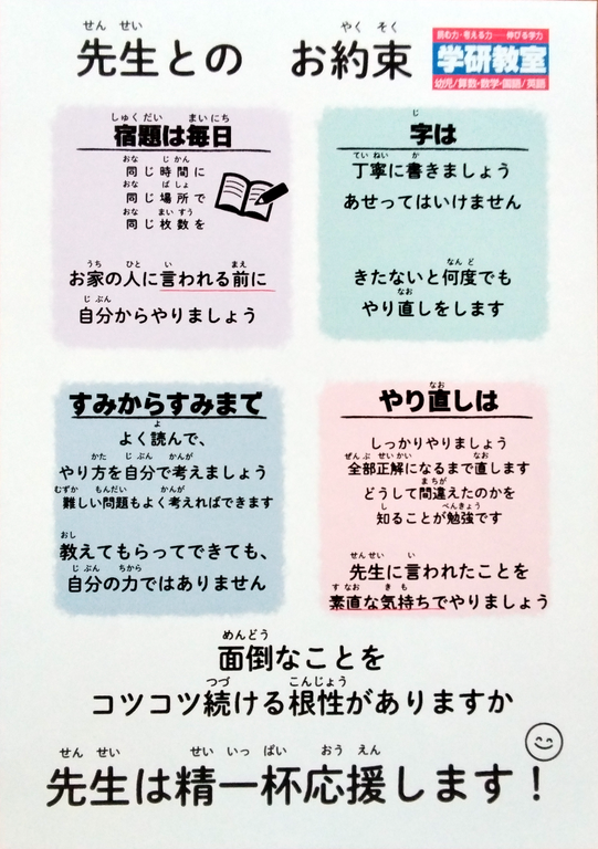 | 教科・ コース | 幼児 算数・国語 英語 学研教室の個別指導は、集団の中で必要に応じて指導者が個別に指導・助言するものです。 小学生 算数・国語 理科・社会 英語 中学生 数学・国語 理科・社会 英語 |